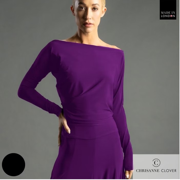 This flattering and adaptable stretch crepe top features a square neckline that can be styled either across both shoulders or elegantly draped over one shoulder for a dramatic look. It pairs beautifully with all the skirts and trousers in this collection, including the Cressida Ballroom Skirt, Emanuela Trousers, and Arabella Latin Skirt.