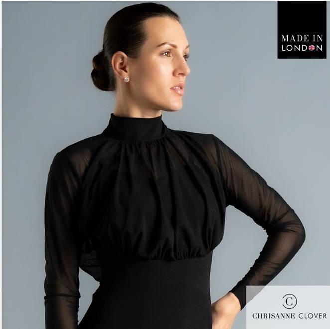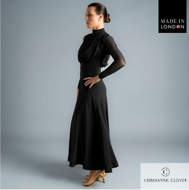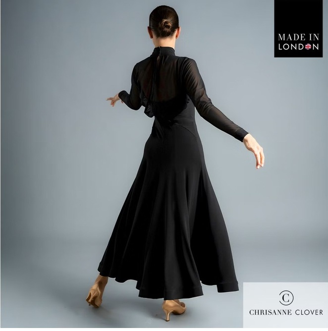 Individually handcrafted at our London Head Office by our skilled seamstresses, this piece is designed, produced, and photographed in-house to ensure exceptional quality. Made from premium Chrisanne Clover Stretch Crepe and Stretch Net fabrics, the Meredith Ballroom Dress combines durability, flexibility, and elegance—perfect for dancers who demand excellence.