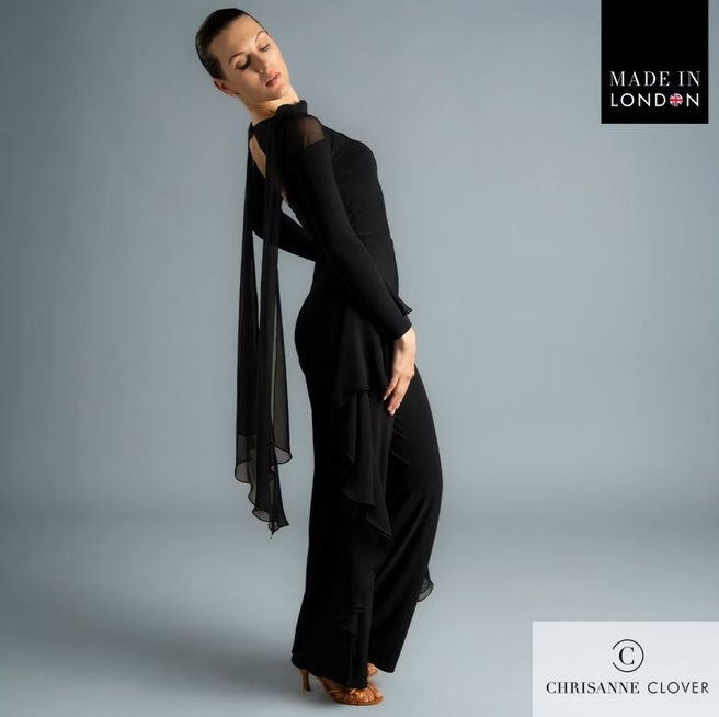 The Darcy Top is the epitome of elegance and movement, designed to make an impression both on and off the dance floor. Featuring a flowing georgette scarf detail that cascades gracefully down the back, this top adds dramatic flair to every turn.